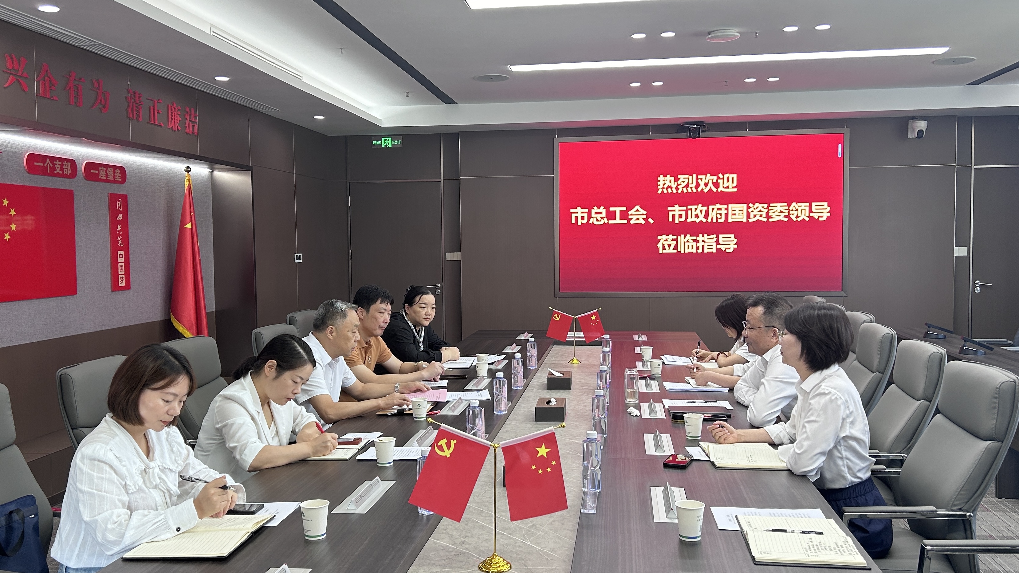 9月23日上午,市总工会党组成员、副主席周景腰和市政府国资委党委委员、副主任黄俊一行深入担保公司开展调研,市昌达集团党委副书记、工会主席王卫国,市担保公司党支部书记、董事长余韵参加调研座谈。
