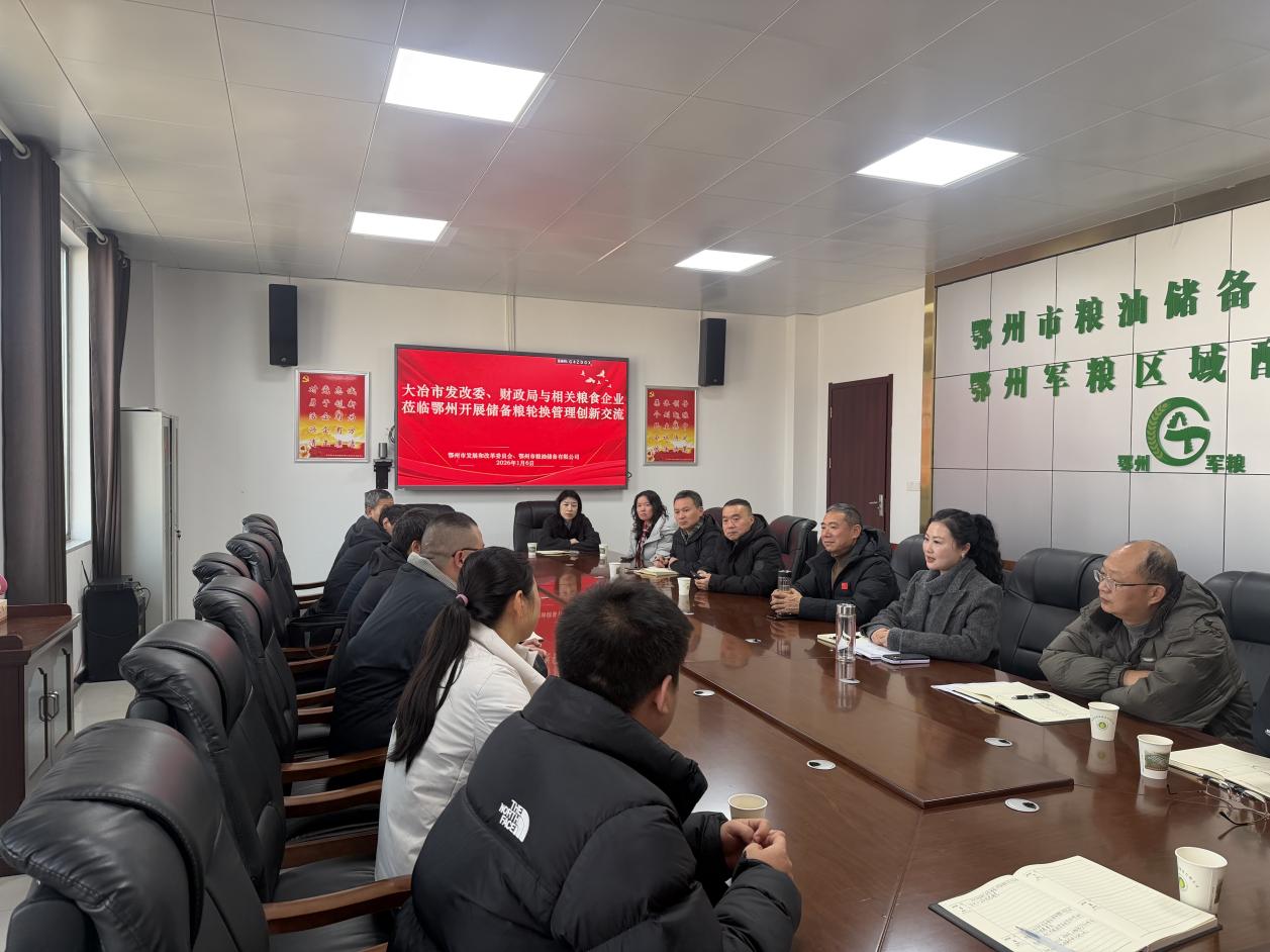2026年1月6日,湖北省大冶市发展和改革局、财政局及大冶市康穗粮食储备有限公司一行,赴鄂州市粮油储备有限公司开展专题工作交流。双方聚焦市级储备粮管理模式的创新实践进行了深入研讨与经验分享。鄂州市发展和改革委员会、鄂州市粮油储备有限公司相关人员参加了此次交流活动。