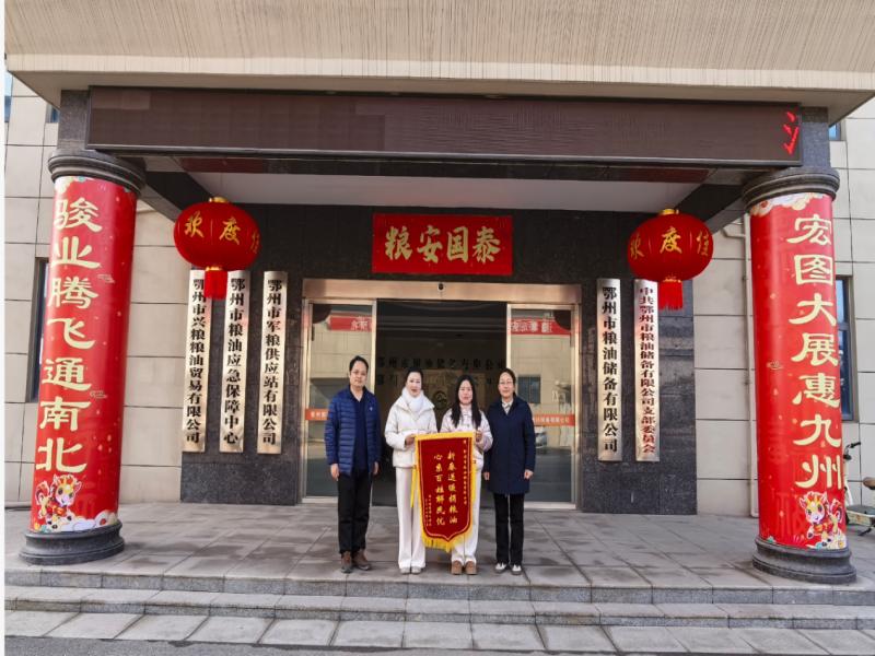 2026年2月12日,在新春佳节即将来临之际,樊口街道樊口社区、樊川社区负责人一行先后来到鄂州市粮油储备有限公司,分别将印有“新春送暖捐粮油 心系百姓解民忧...