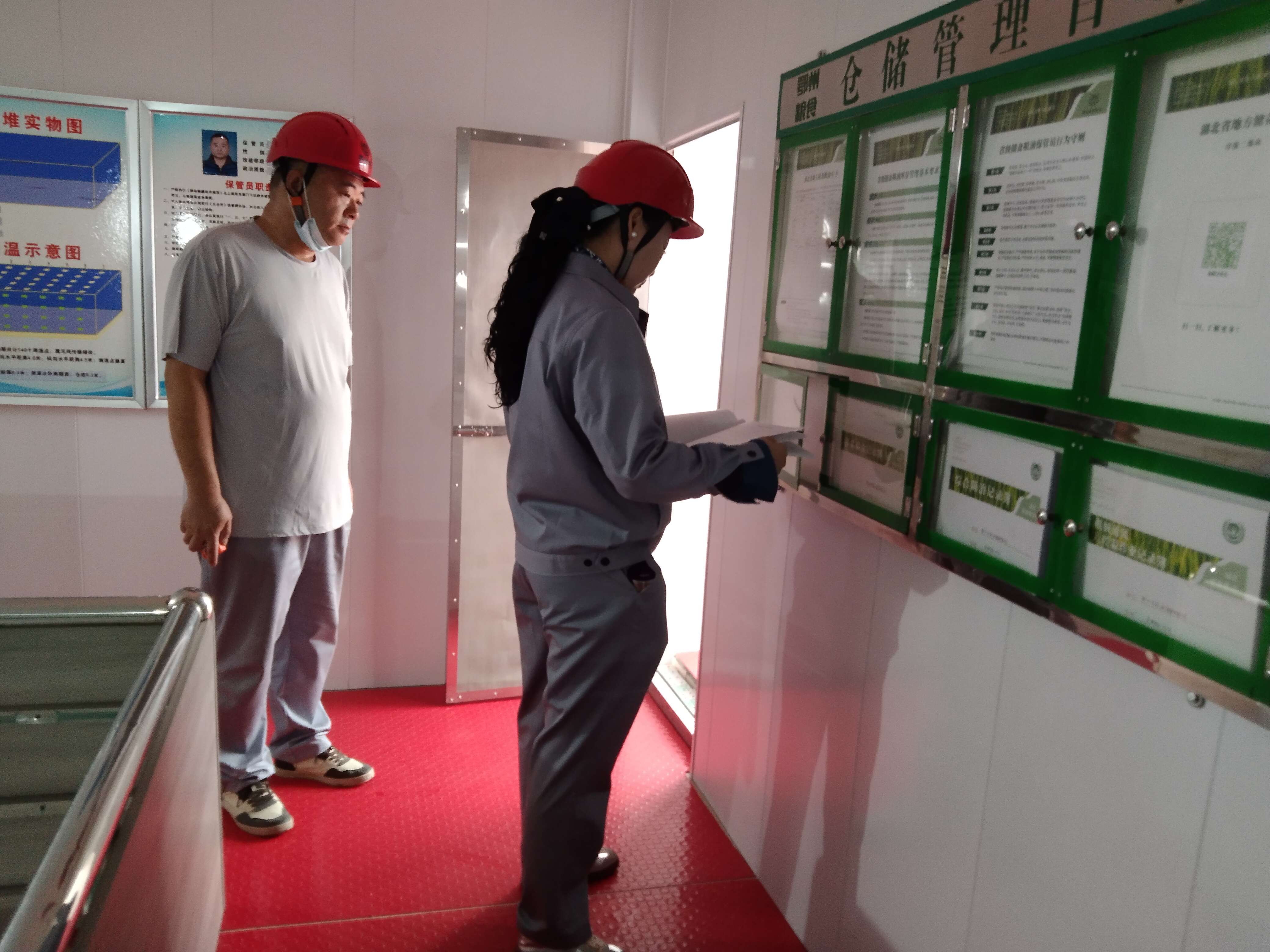 为推动党建工作与仓储管理深度融合、同频共振,11月7日,粮油公司党支部书记、董事王玲带领考核组,走进吴都库区,对17个处于静态管理状态的仓房开展“党员红旗仓”“示范红旗仓”专项考核,以精准考评倒逼管理提质,为“鄂州粮仓”筑牢坚实可靠的安全防线。