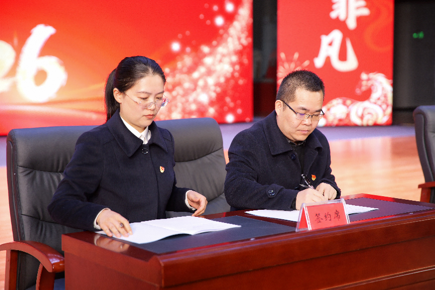 会上,公司主要负责人与经理层签订《2026年度经营工作目标责任书》,经理层与各分管部门逐一签订《2026年度工作目标责任书》,通过层层压实责任,进一步明确目标任务,激发全员干事创业的热情。